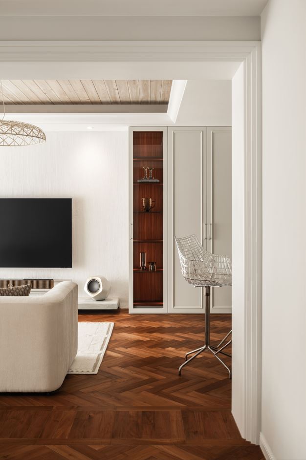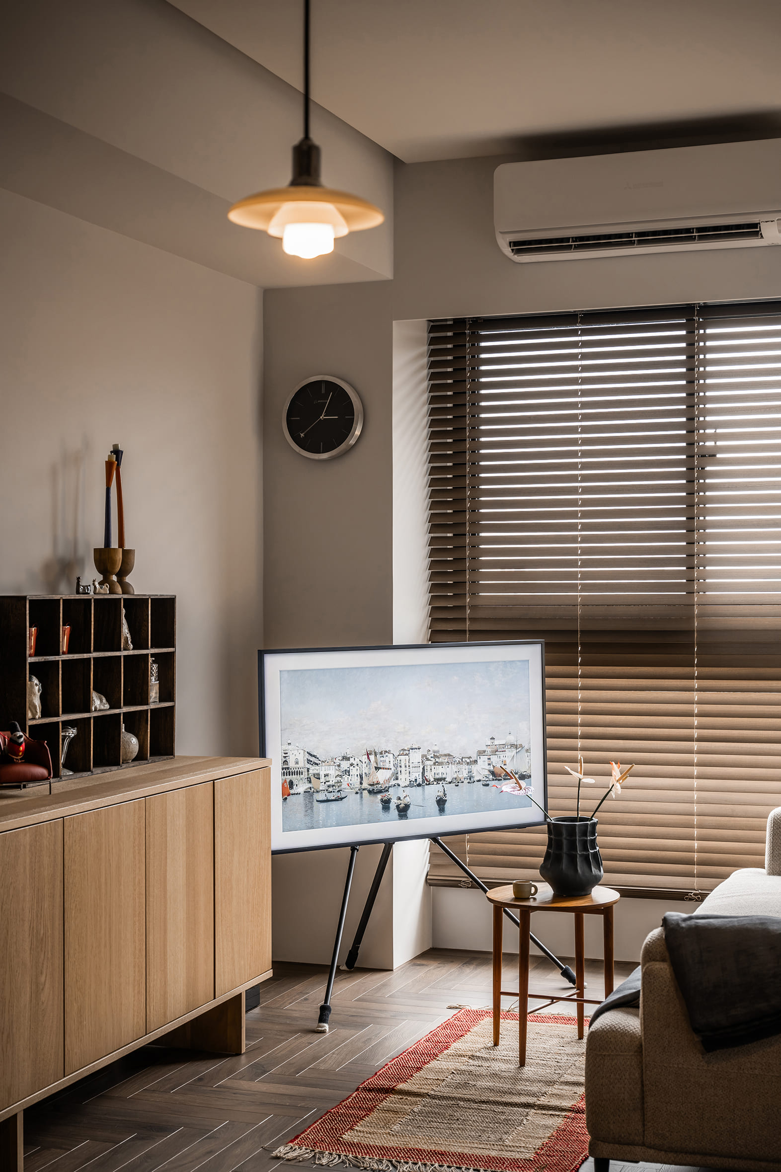 本案以軟裝設計為主軸,硬體配置簡約克制,透過家具、燈具與選物堆疊空間層次。結合溫潤木質、智能照明與完善收納機能,打造兼具實用性與生活溫度的居家空間。