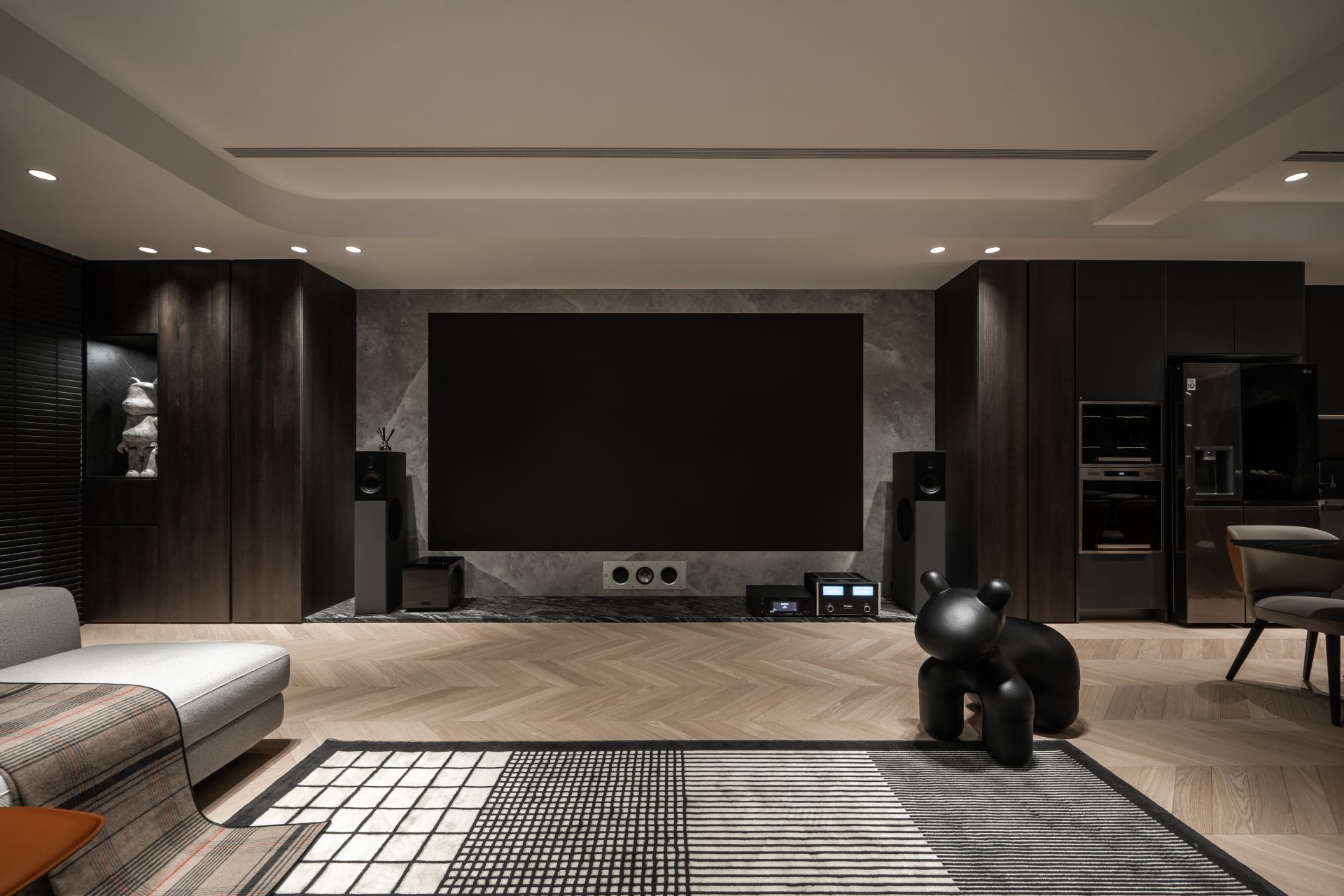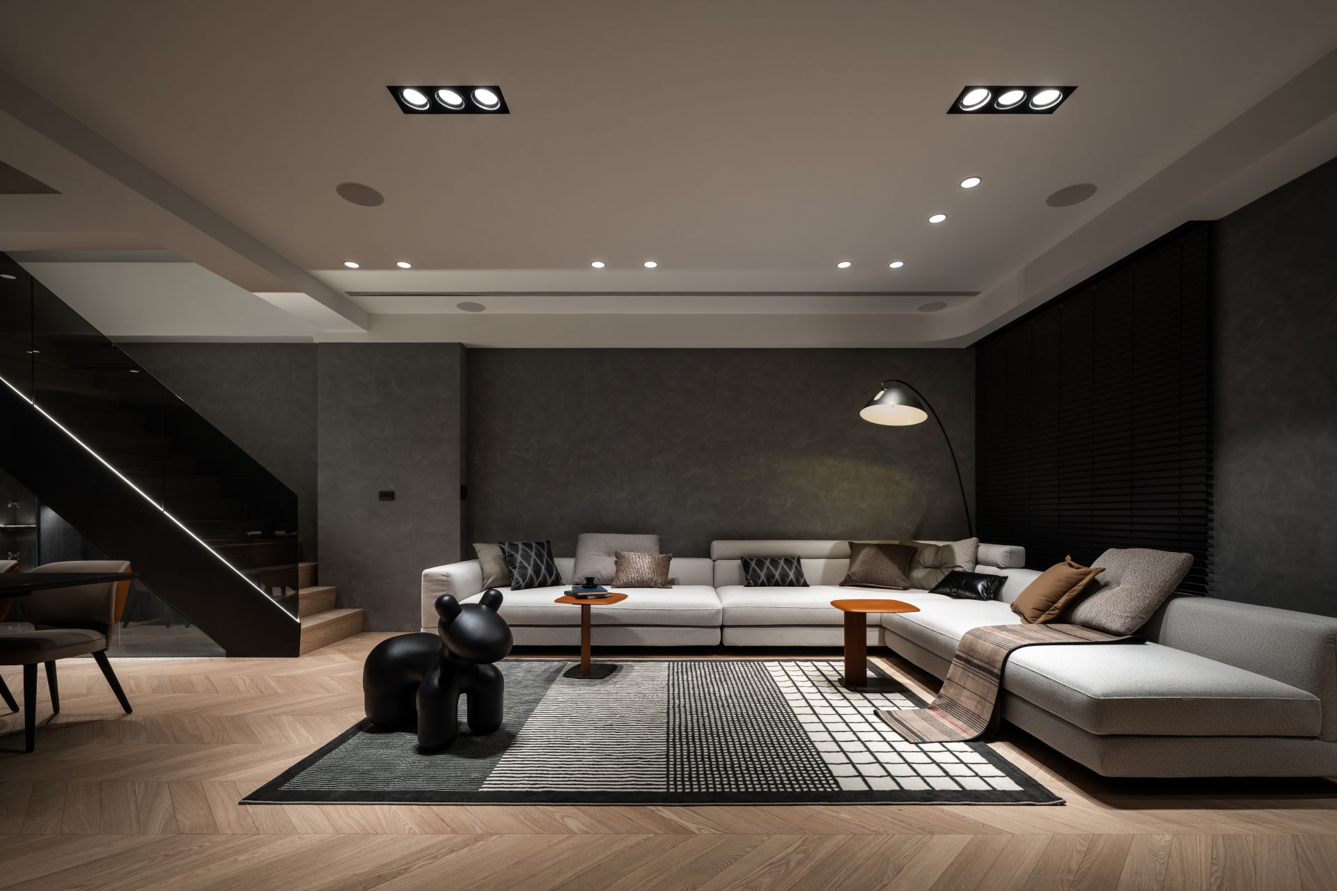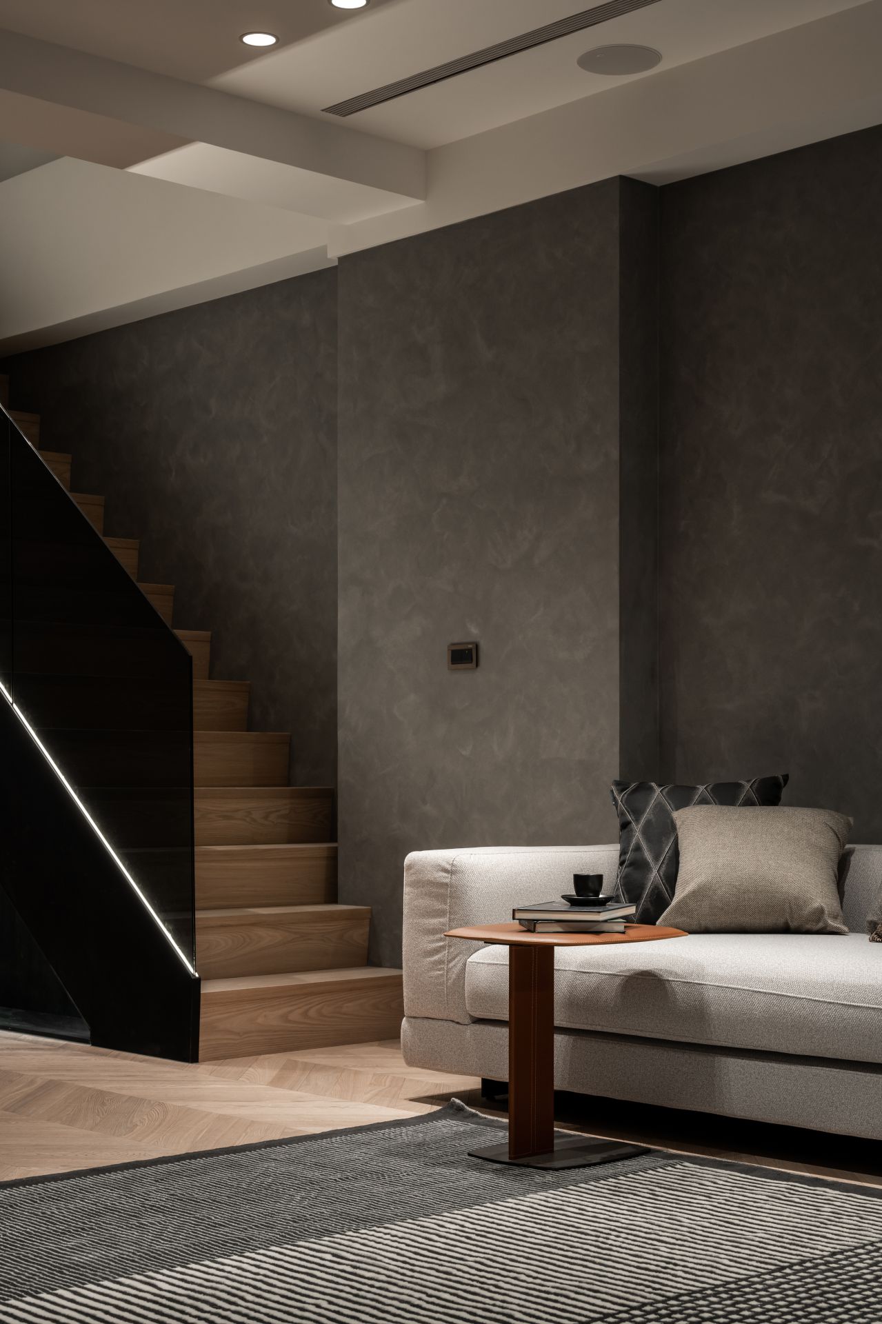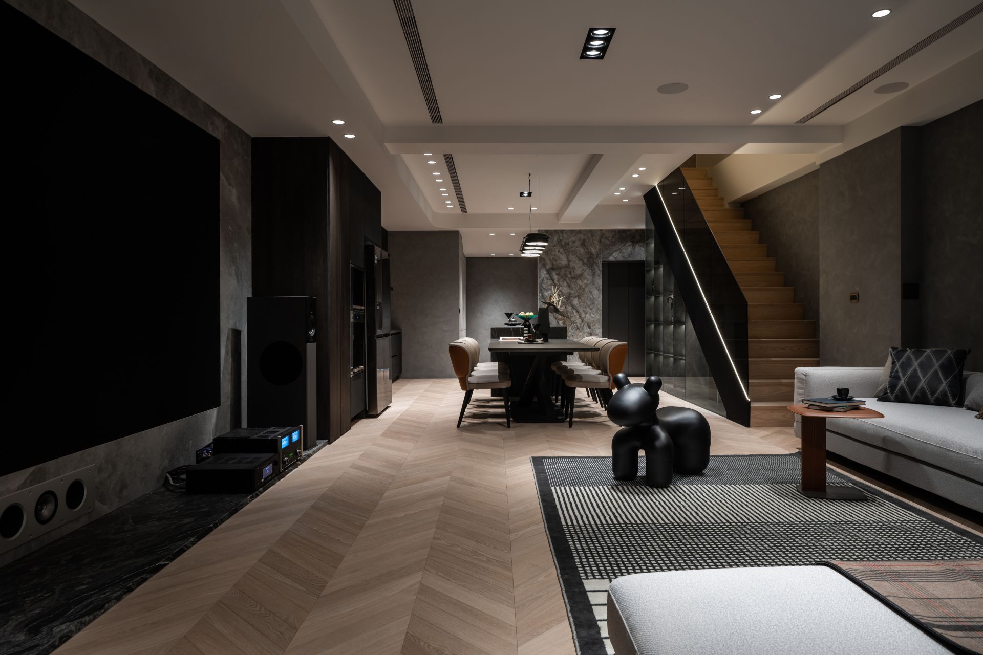因應屋主需求,設計師將 Apple HomeKit 智能系統融入整體設計,串連全屋燈光、空調、安防與音響系統,實現一鍵掌控。屋主在外時,可遠端控制調整家中環境;回家時,自動啟動的燈光與已經打掃完成的地板,讓生活變得更輕鬆有序。