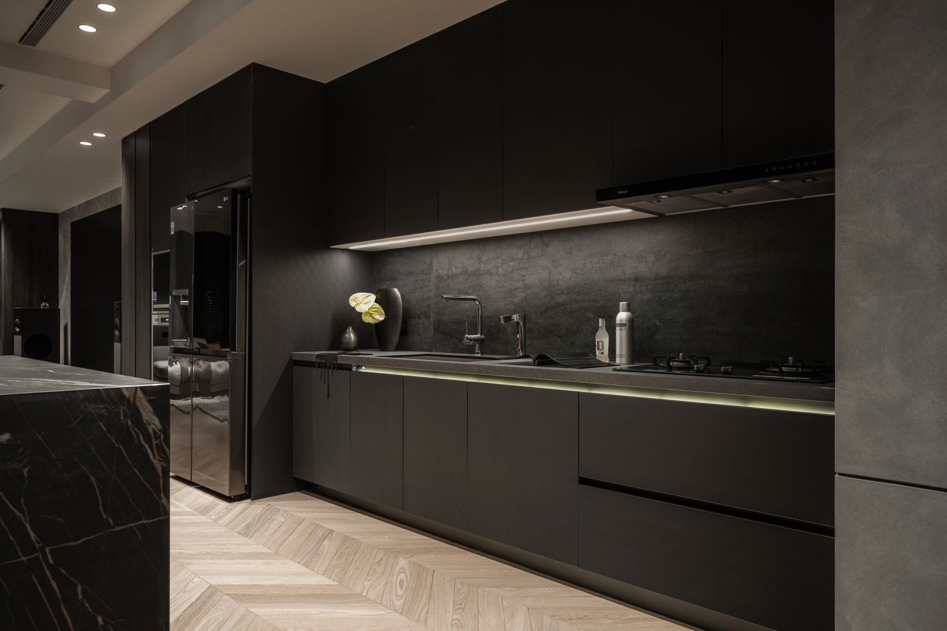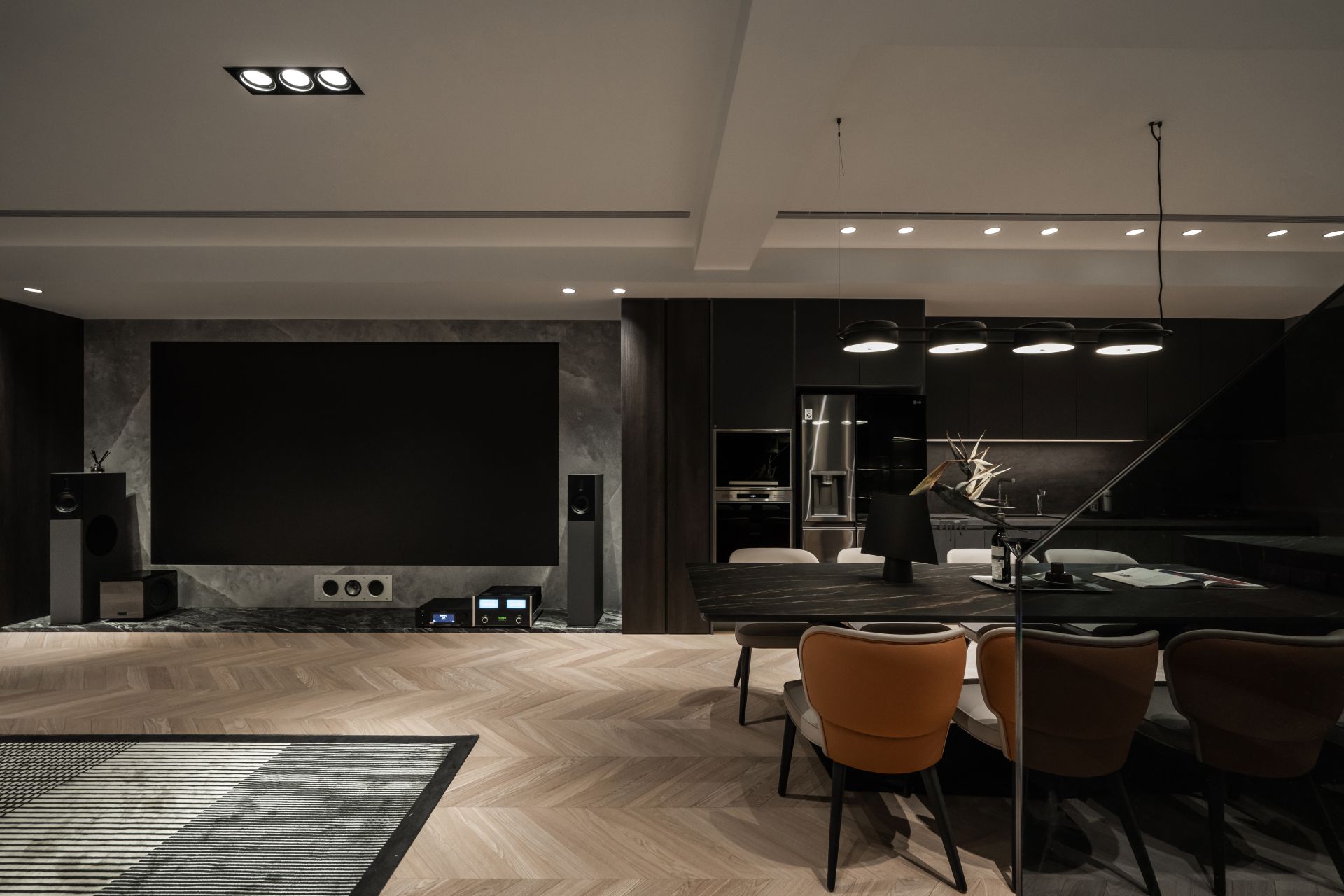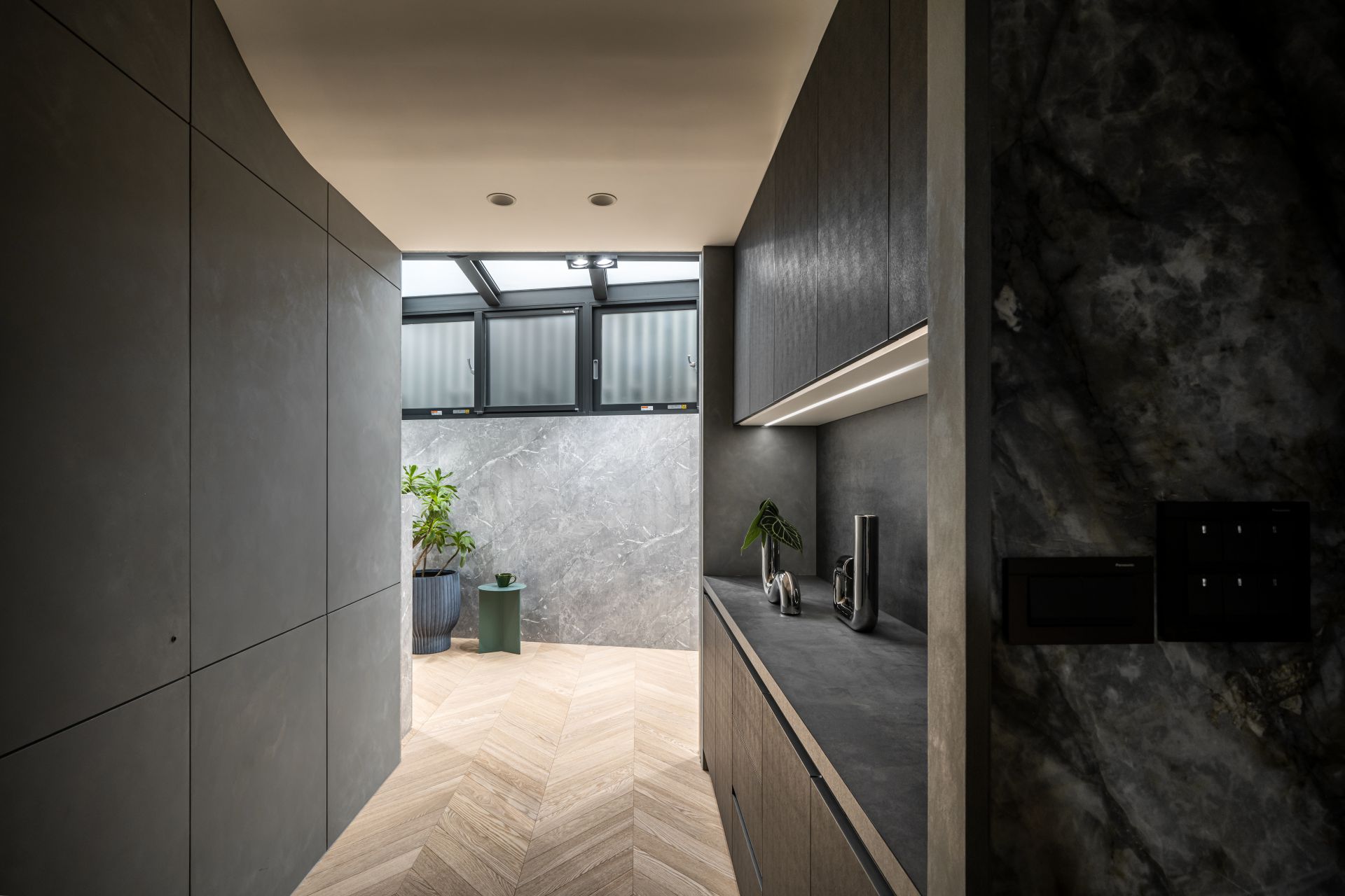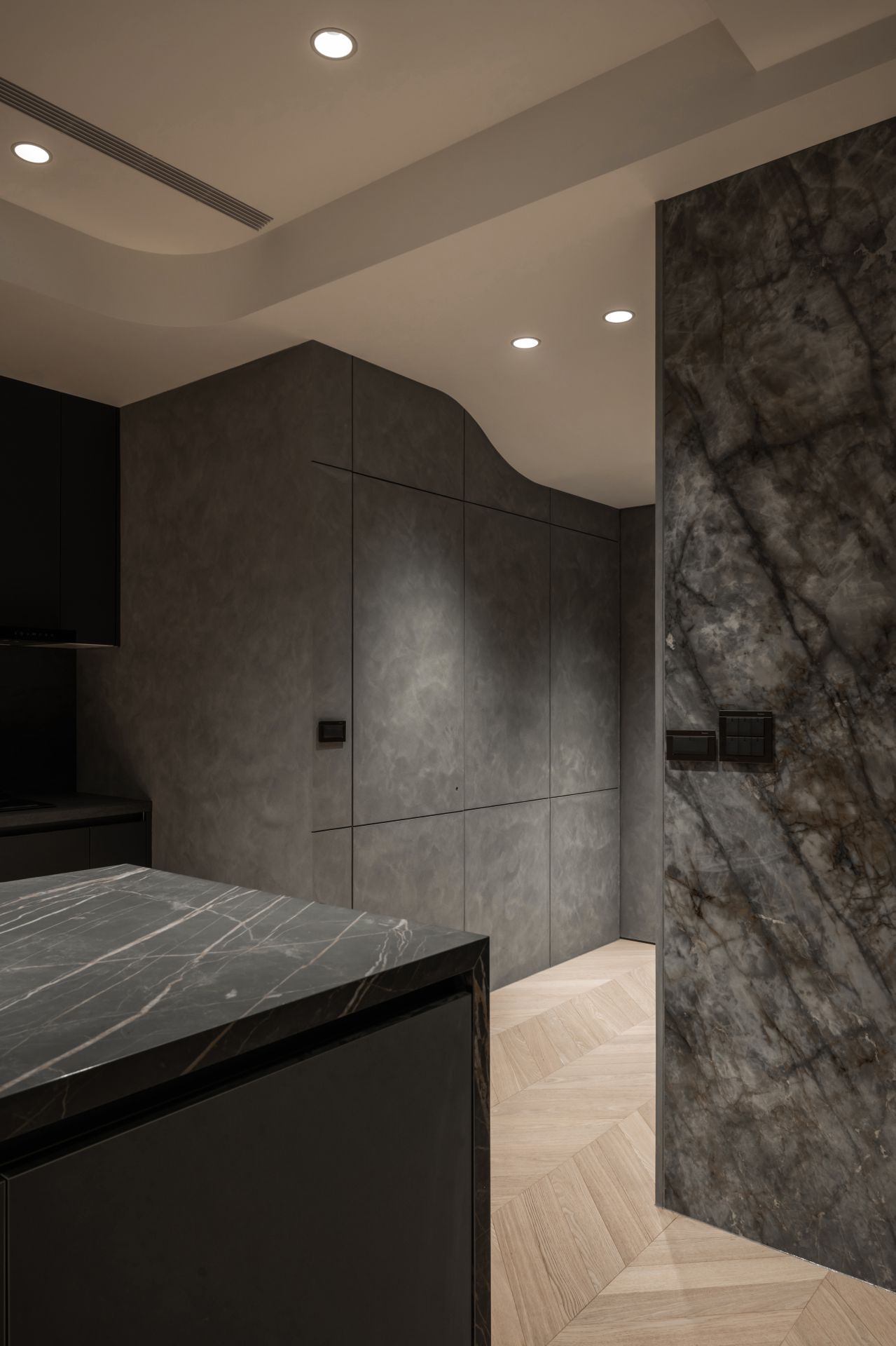 因應屋主需求,設計師將 Apple HomeKit 智能系統融入整體設計,串連全屋燈光、空調、安防與音響系統,實現一鍵掌控。屋主在外時,可遠端控制調整家中環境;回家時,自動啟動的燈光與已經打掃完成的地板,讓生活變得更輕鬆有序。