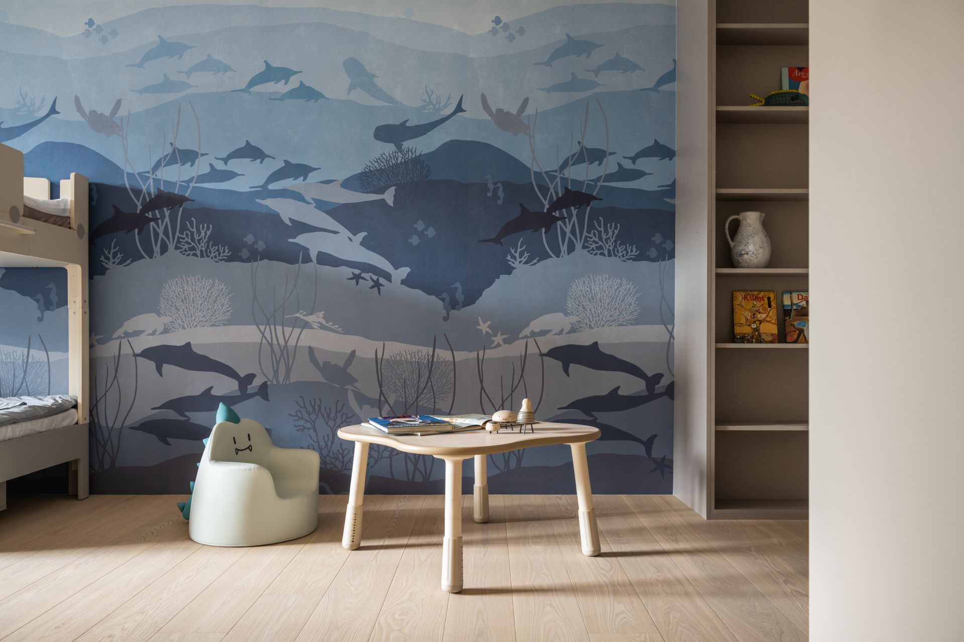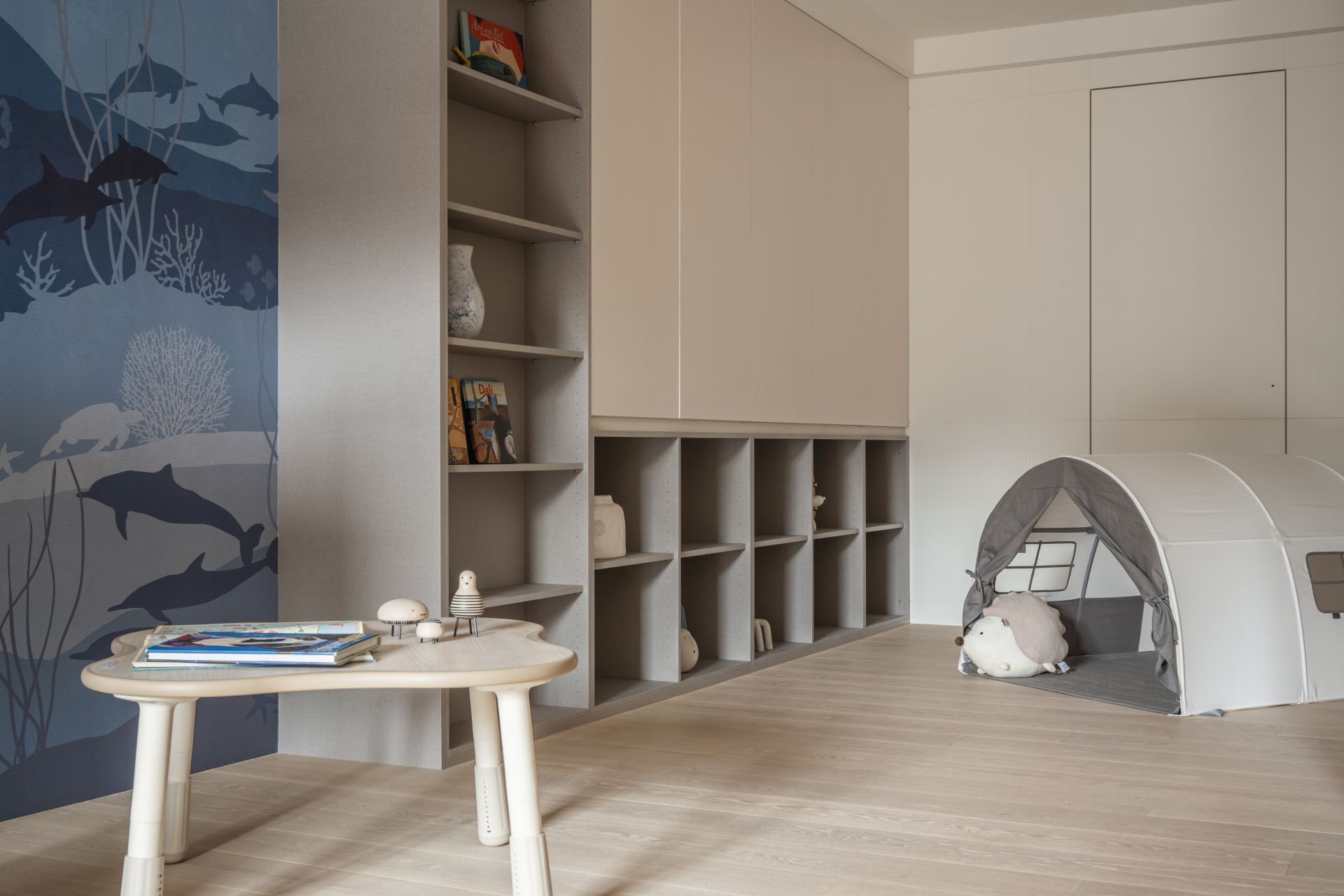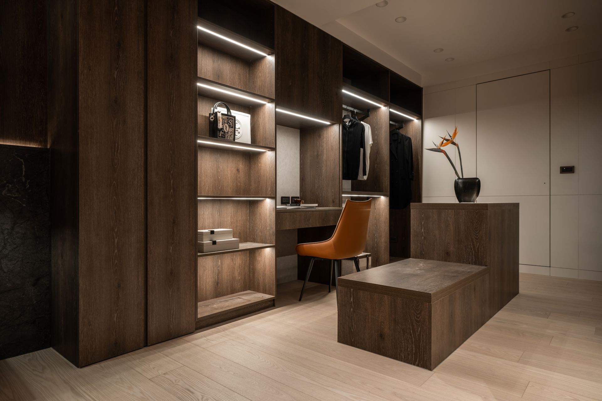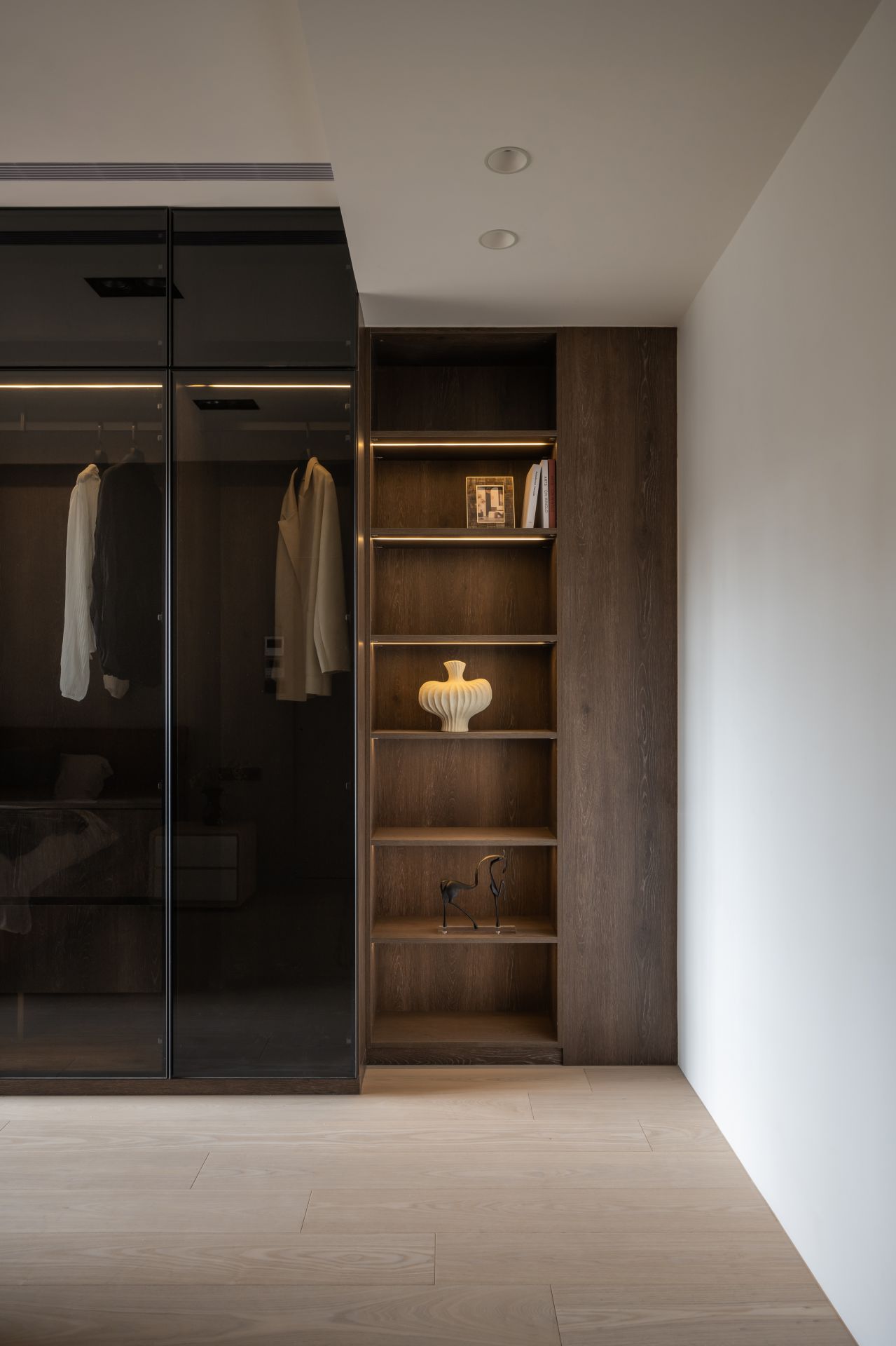 因應屋主需求,設計師將 Apple HomeKit 智能系統融入整體設計,串連全屋燈光、空調、安防與音響系統,實現一鍵掌控。屋主在外時,可遠端控制調整家中環境;回家時,自動啟動的燈光與已經打掃完成的地板,讓生活變得更輕鬆有序。
