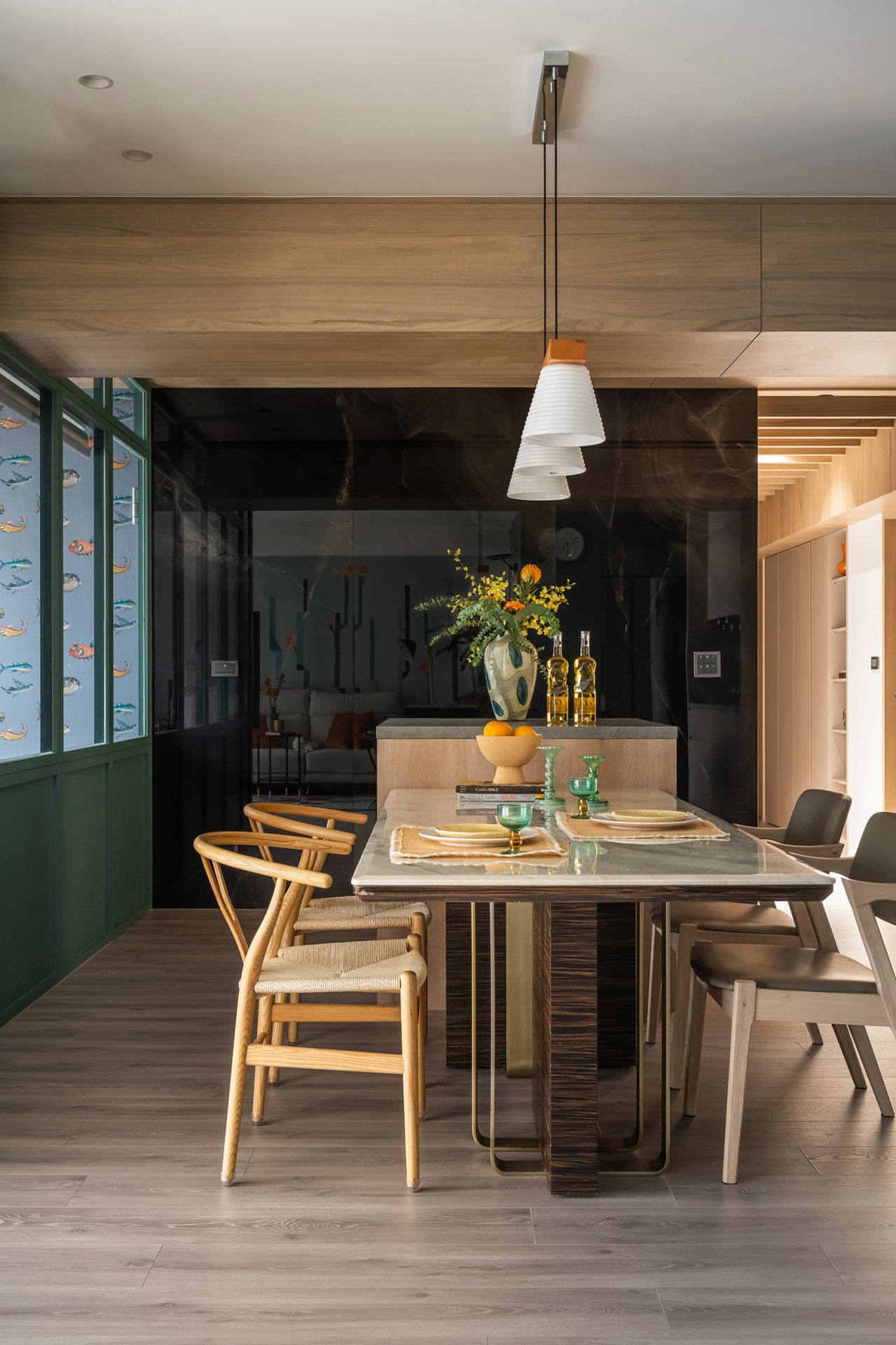 屋主一家從事醫療業,因工作忙碌,他們比誰都更珍惜片刻的悠閒時光,最愛出國旅行,體驗不同文化的居住風格。因此,在打造新家時,他們不想再走大眾流行的溫潤奶油色調,而是希望擁有一個充滿個性、色彩鮮明、具有獨特空間流動感的居所。